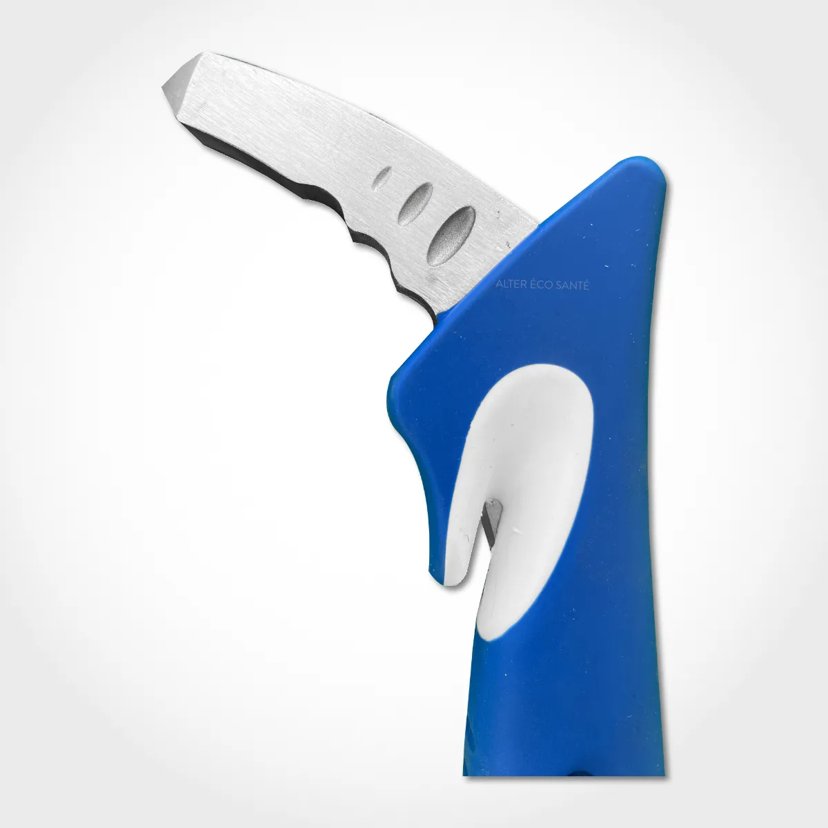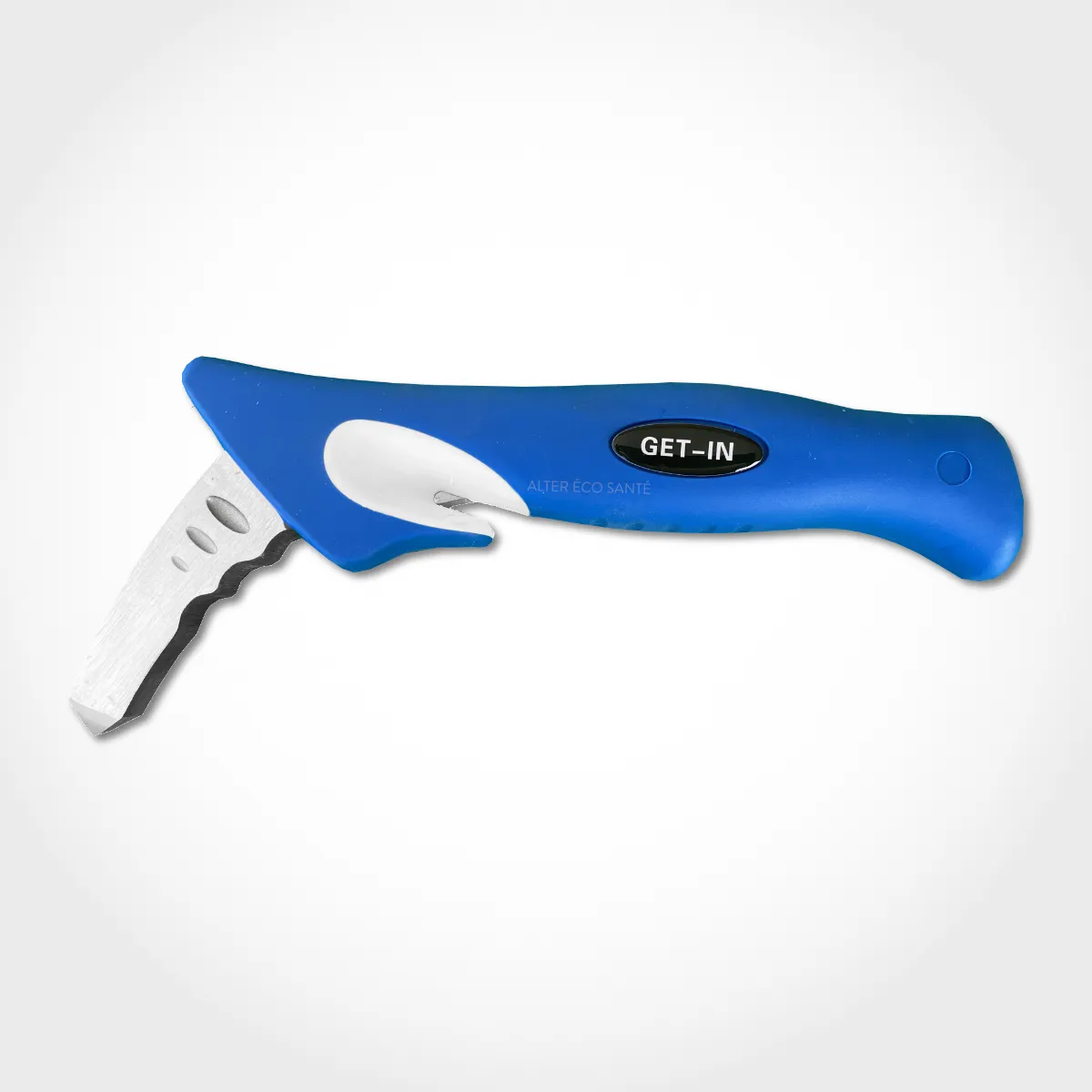 Ergonomique et antidérapante, elle est utilisable du côté passager ou conducteur. En cas d’urgence, elle devient un brise vitre et permet de couper la ceinture de sécurité.