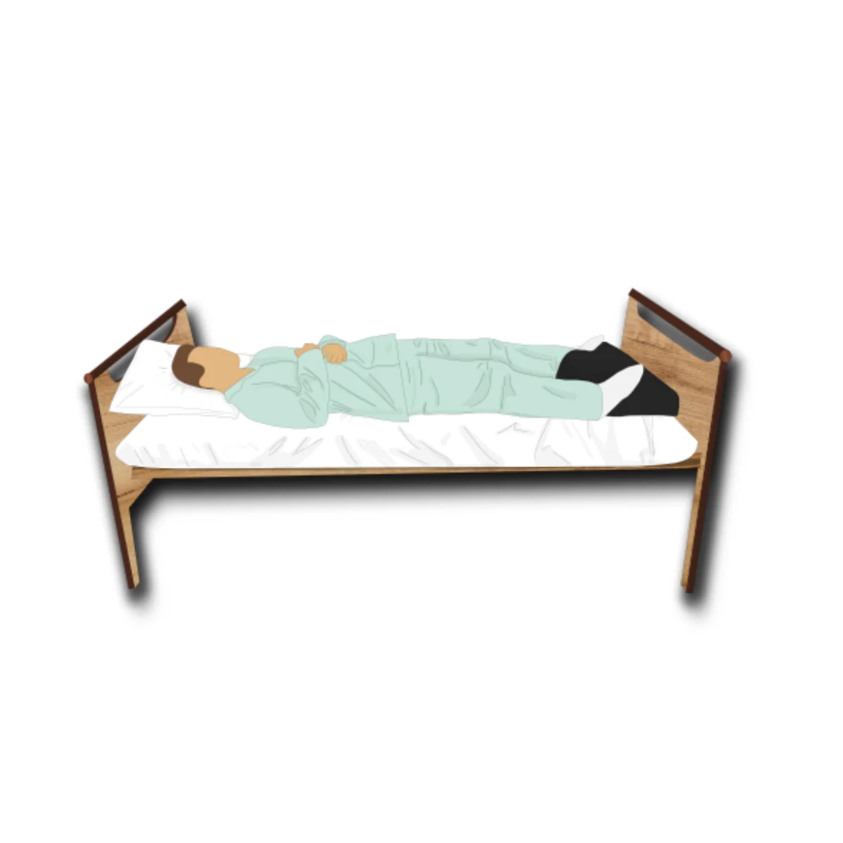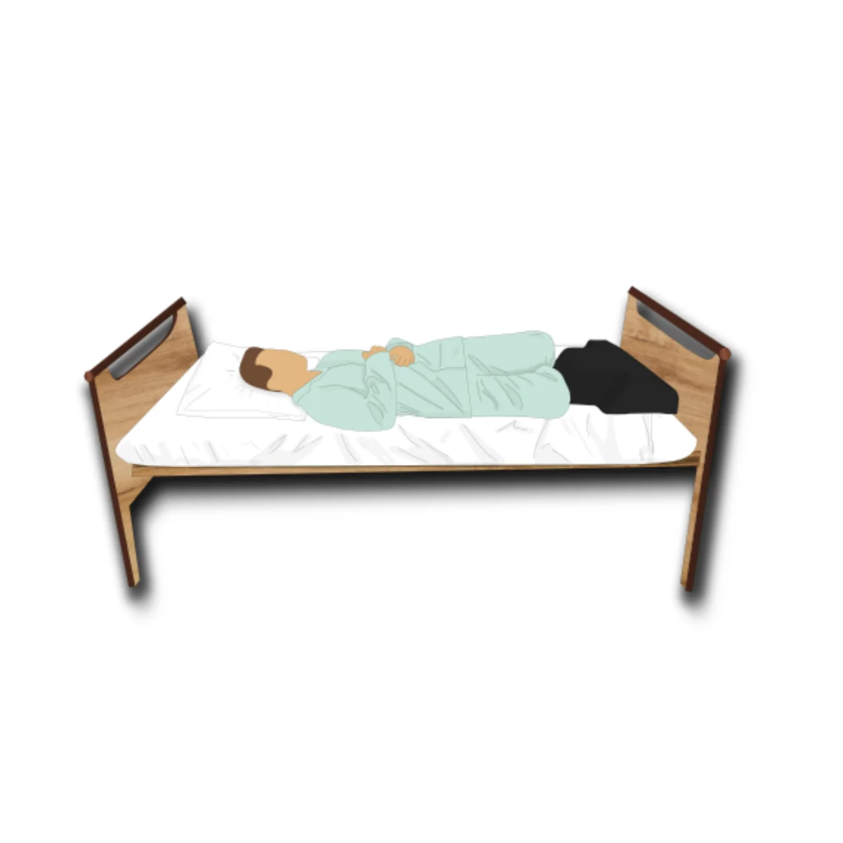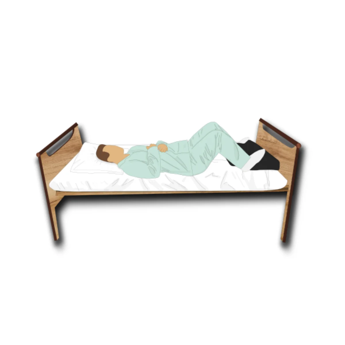 ESCABOLI® s'adresse à des personnes couchées ayant besoin d’un appui stable au niveau des pieds pour se rehausser au lit.