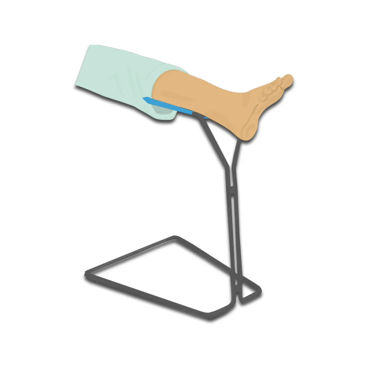 La potence de suspension talonnière se place sous le talon de la personne et permet l’aération et le soin du pied du patient, ce qui favorise la cicatrisation dans le cas d‘escarres talonnières.