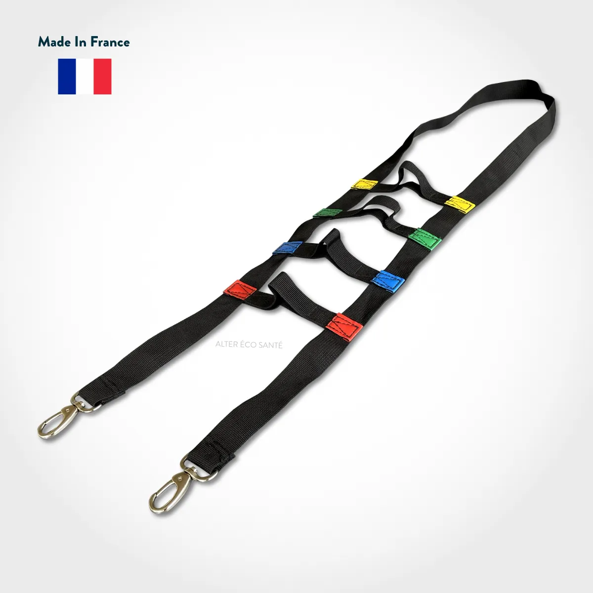 Les patients ayant besoin d'une aide physique pour les accompagner lors du transfert.SYSSEO : Système ISSEO® : composé de la ceinture ARTUR® et de l'échelle VERTIGRAD® - Taille 38/58 | UDI : 03760311370151